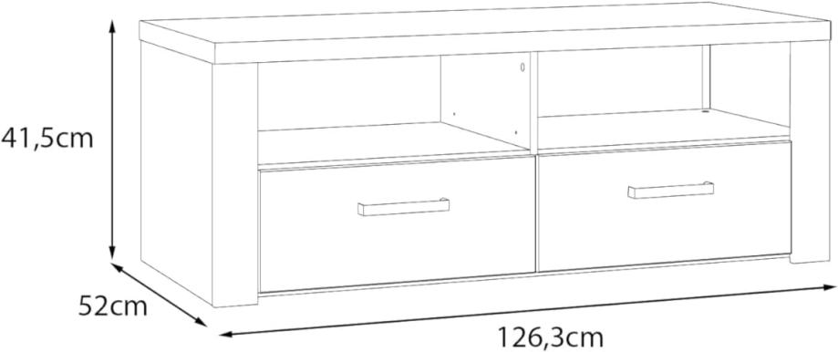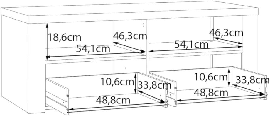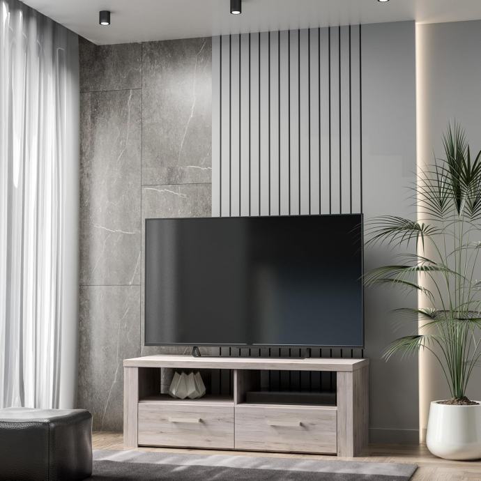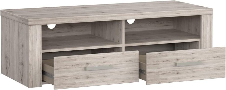 Jednostavan i praktičan TV ormarić nadopunjuje mnoge životne stilove i nudi velik prostor za pohranu vaših elektroničkih uređaja s dvije otvorene police i dvije ladice. Prikladan je za televizore do 55 inča i pomaže vam da pregledno i organizirano pohranite svoje uređaje.