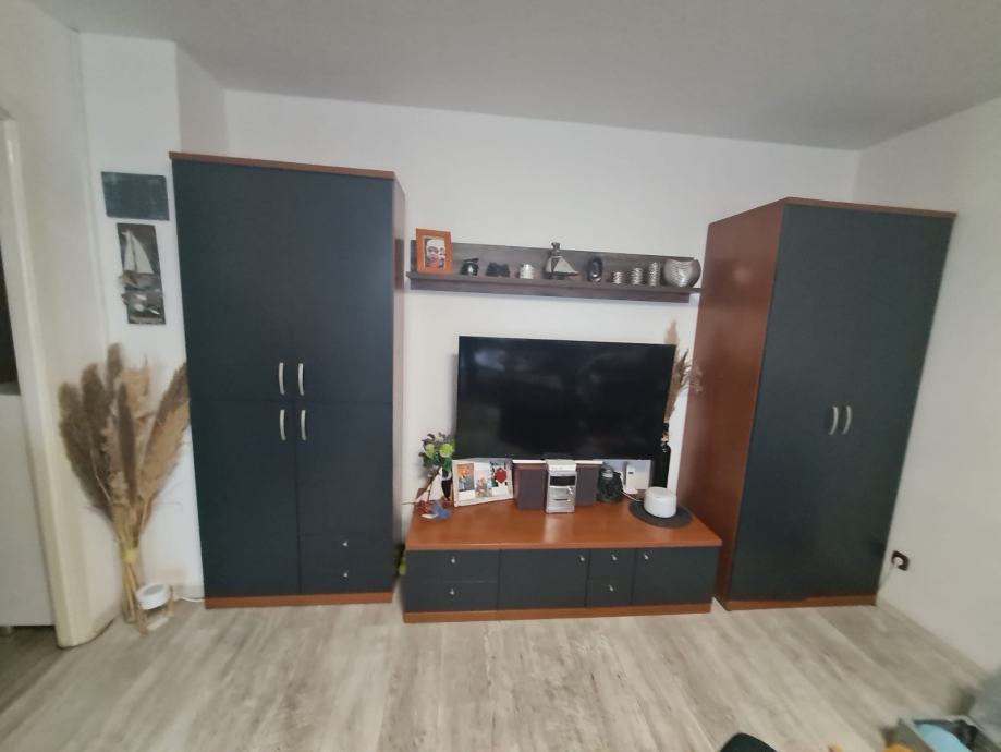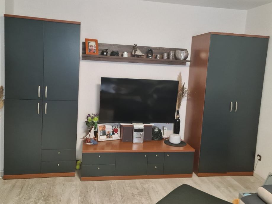 Prodaje se komplet od tv regala, 2 ormara i komode od alplesa punog drva bez ostecenja.