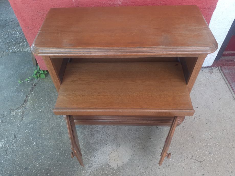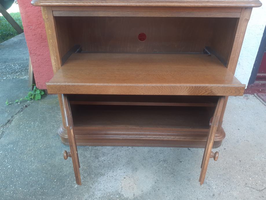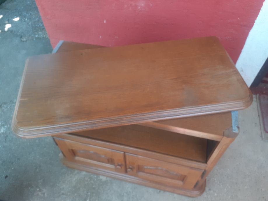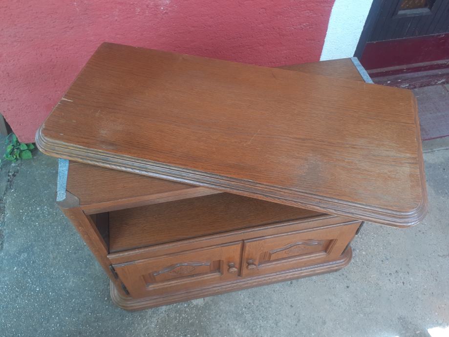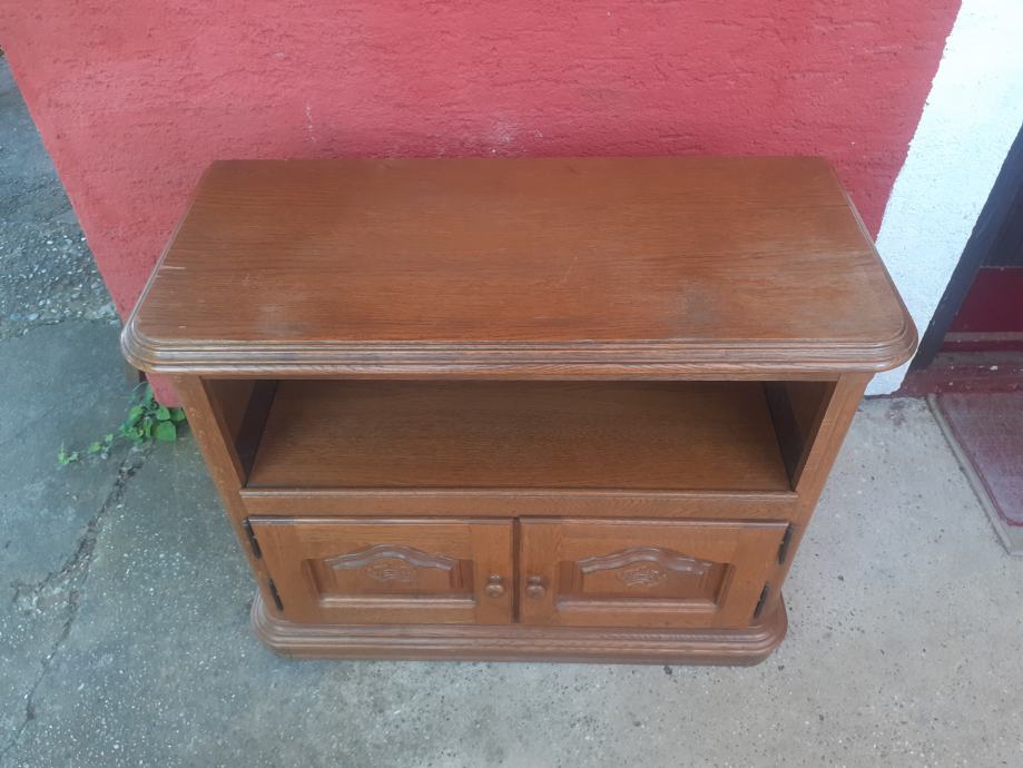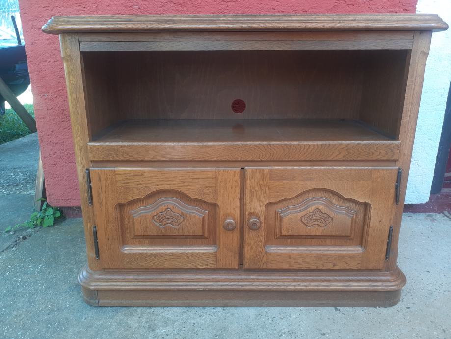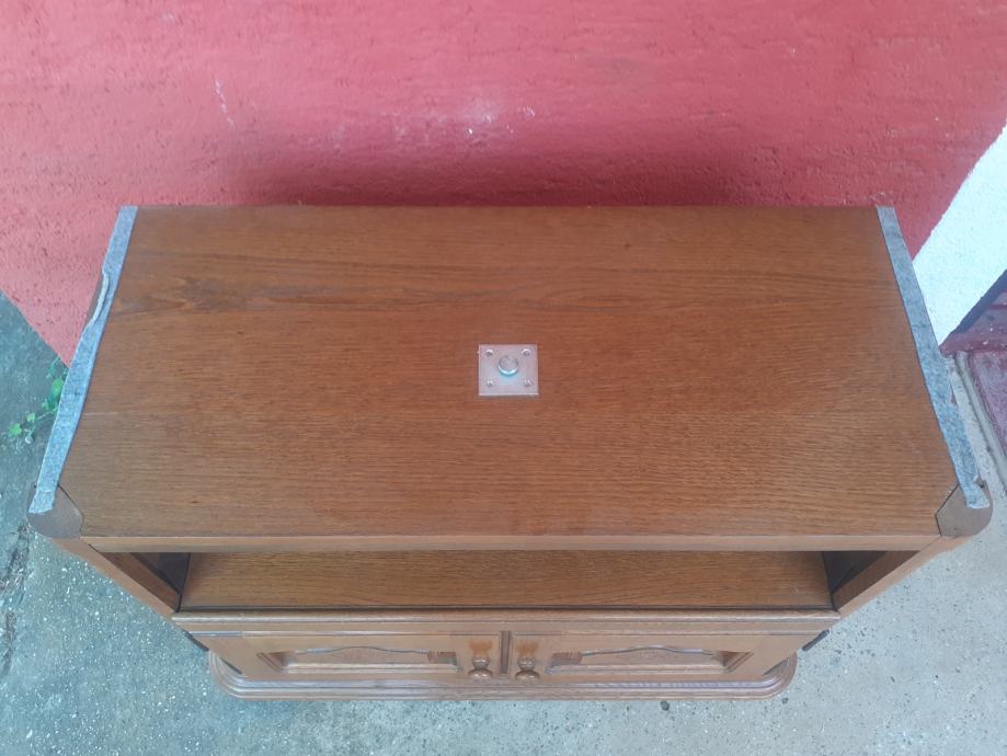 Prodajem TV ormarić od punog drveta. Ormarić je 30+ godina starosti i u vrlo dobrom je stanju, uz vidljive tragove korištenja i sitne ogrebotine, isključivo s gornje strane, dok je ostalo, a pogotovo s obzirom na starost, u odličnom stanju. Dimenzije ormarića su 95 cm x 43 cm, dok je visina 75 cm. Ormarić je tvorinički sastavljen i nije ga moguće rastaviti, gornji dio se zakreće, a dolje se ladica izvlači. Imam još namještaja u istom stilu, oglasi broj 44318440, 44337407, 44337450, 44337588, 44337706, 44337753, popust na količinu.