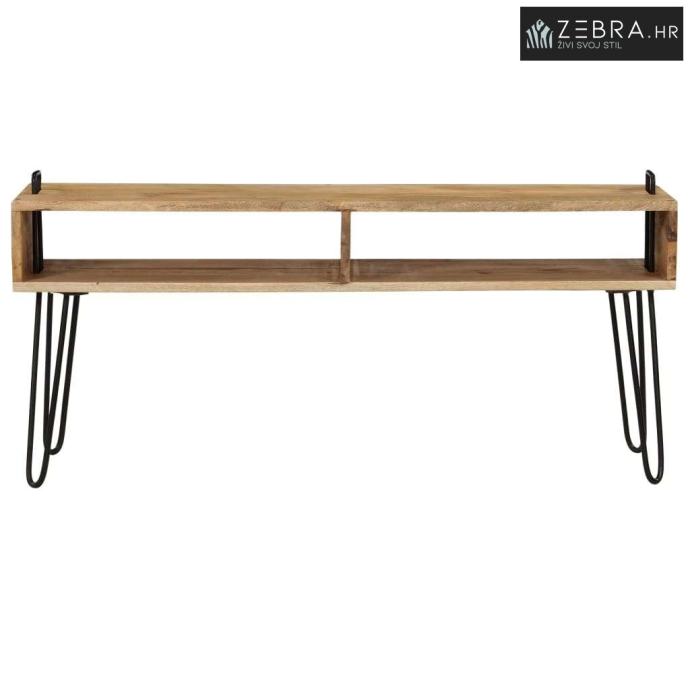 Izrađen od masivnog drva manga i čvrstih čeličnih okvira, ormarić za HiFi vrlo je stabilan i izdržljiv. Površina je idealna za postavljanje televizora ili stereo sustava, kao i ukrasnih predmeta poput vaza ili biljaka lončanica. Polica pruža dodatni prostor za čuvanje vaših DVD playera, igraćih konzola, uređaja za streaming, medijskih nosača itd. uredno organiziranima. Čelični okviri pridonose čvrstoći stalka, kao i njegovom industrijskom stilu. Svaki korak u procesu izgradnje izveden je s najvećom pažnjom, bilo da se radi o poliranju ili lakiranju. TV stalak jednostavno se sastavlja.