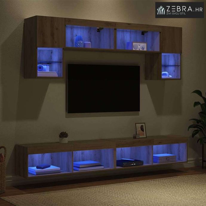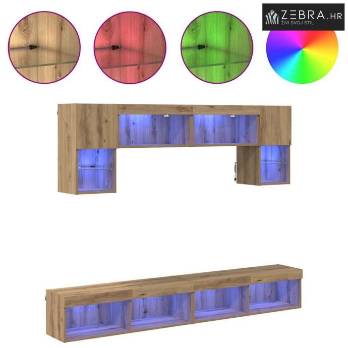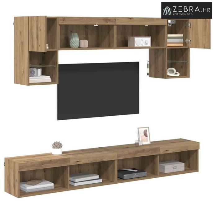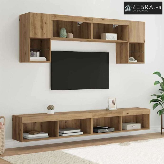 TV zidne jedinice s LED-om 6 pcs Umjetnički hrast Konstruirano drvo