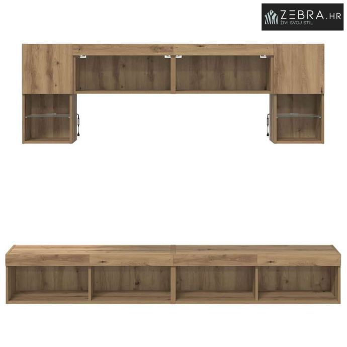 Ova moderna TV jedinica donosi sofisticiranost i funkcionalnost u vaš dnevni boravak, s elegantnim, minimalističkim izgledom. Idealna je za one koji vole čiste linije i jednostavnost, služi kao privlačan naglasak i praktično rješenje za pohranu. S konstruiranim drvom i mat završnom obradom, stvara ugodnu atmosferu. Dimenzije su prilagodljive različitim prostorima, pružajući mogućnosti pohrane i izlaganja bez zauzimanja previše mjesta na podu. Dodatno, LED rasvjeta poboljšava vizualnu privlačnost, stvarajući ugodnu atmosferu za svaku zabavu.