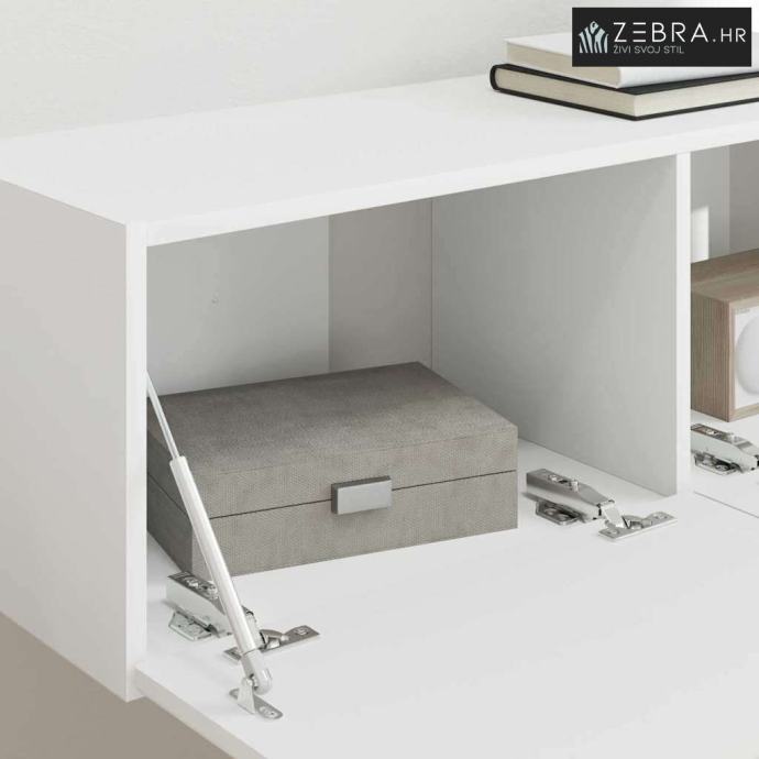 Zidne police: Ova kabineta ima zidne police koje štede podni prostor i daju moderan izgled. Savršena je za gradske stanove ili male dnevne boravke gdje je važno iskoristiti prostor.