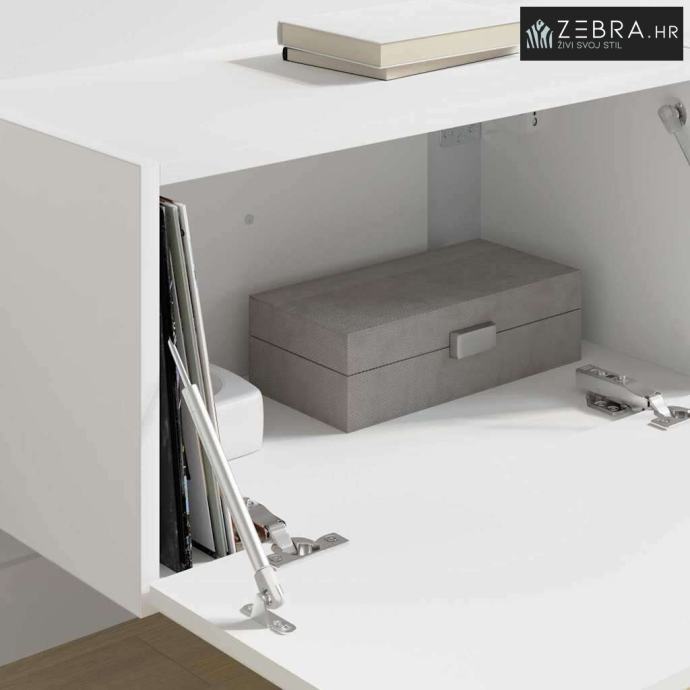 Ova moderna TV zidna kabineta spaja sjajan izgled i funkcionalnost, savršeno odgovarajući potrebama današnjeg doma. Njezin elegantan, minimalistički stil idealan je za dnevni boravak, jer nudi super rješenje za pohranu medijske opreme i dodataka. Kubični oblik i čiste linije čine je stilski, ali i praktičnom opcijom za one koji žele uredan i organiziran prostor. Izvrsna je prilika za svakoga tko želi u svoj dnevni prostor dodati malo sofisticiranosti.