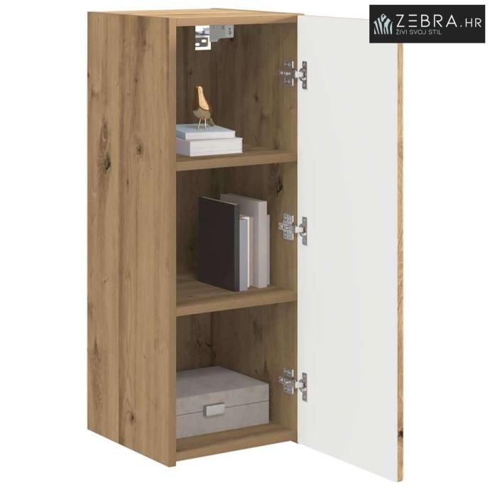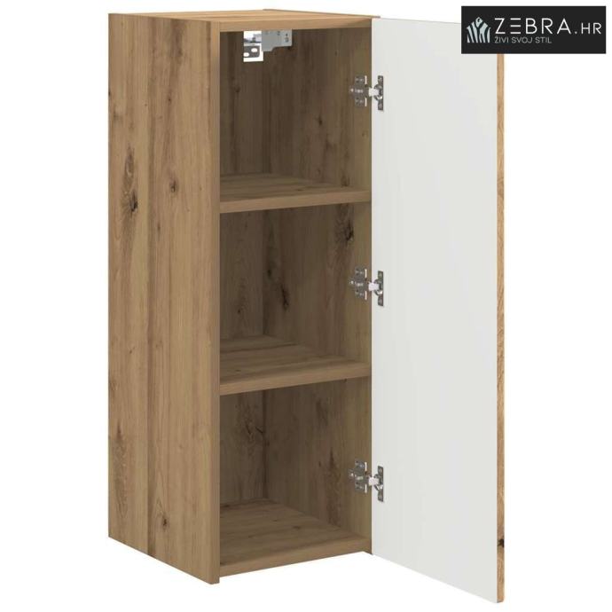 Konstrukcija od konstruiranog drva: Izrađen od visokokvalitetnog konstruiranog drva, ovaj zidni ormar nudi čvrstu i trajnu strukturu. Materijal je otporan na habanje i savršen za dugotrajnu upotrebu. Elegantan uzorak zrna donosi dodatnu dozu stila u vaš životni prostor. Zidna funkcionalnost: Praktičan zidni dizajn štedi podni prostor, idealan za modernu okolinu. Stabilna zidna postavka omogućuje lak pristup elektronici. Njegov jednostavan izgled doprinosi urednoj i organiziranoj estetici prostora. Diskretna rješenja za pohranu: Opremljen vratima koja se otvaraju do 90° i policama, ormar nudi obilje prostora za pohranu svih vaših stvarčica. Bilo da se radi o knjigama, medijskim uređajima ili dekoraciji, sve ima svoje mjesto, držeći vašu dnevnu sobu bez nereda. Jednostavan i moderan stil: S minimalističkim dizajnom, ovaj ormar donosi moderan stil. Savršen za suvremene domove, njegova nenametljiva elegancija poboljšava postojećem dekoru, nudeći funkcionalnost bez žrtvovanja stila. Jednostavno održavanje: Održavanje ovog komada je jednostavno, samo brzinsko brisanje vlažnom krpom je dovoljno za uvijek čist izgled. Ovaj proces čišćenja pomaže da ormar zadrži svoj besprijekoran izgled godinama. Boja: Umjetnička hrastovina