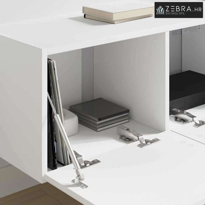 Ova moderna TV zidna kabineta spaja sjajan izgled i funkcionalnost, savršeno odgovarajući potrebama današnjeg doma. Njezin elegantan, minimalistički stil idealan je za dnevni boravak, jer nudi super rješenje za pohranu medijske opreme i dodataka. Kubični oblik i čiste linije čine je stilski, ali i praktičnom opcijom za one koji žele uredan i organiziran prostor. Izvrsna je prilika za svakoga tko želi u svoj dnevni prostor dodati malo sofisticiranosti.