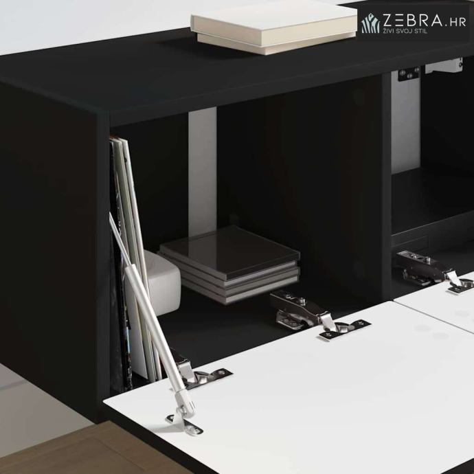 Ova moderna TV zidna kabineta spaja sjajan izgled i funkcionalnost, savršeno odgovarajući potrebama današnjeg doma. Njezin elegantan, minimalistički stil idealan je za dnevni boravak, jer nudi super rješenje za pohranu medijske opreme i dodataka. Kubični oblik i čiste linije čine je stilski, ali i praktičnom opcijom za one koji žele uredan i organiziran prostor. Izvrsna je prilika za svakoga tko želi u svoj dnevni prostor dodati malo sofisticiranosti.
