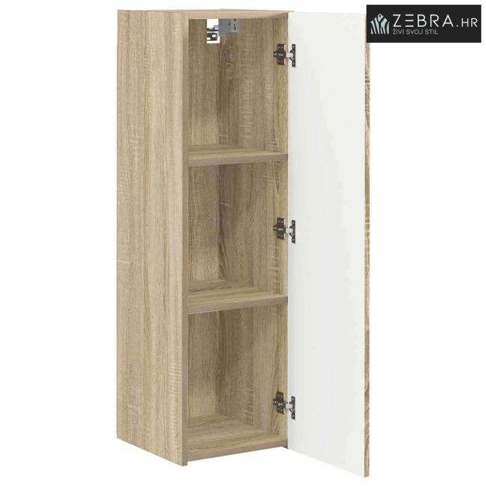 Konstrukcija od konstruiranog drva: Izrađen od visokokvalitetnog konstruiranog drva, ovaj zidni ormar nudi čvrstu i trajnu strukturu. Materijal je otporan na habanje i savršen za dugotrajnu upotrebu. Elegantan uzorak zrna donosi dodatnu dozu stila u vaš životni prostor.
