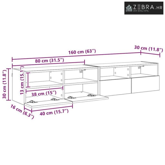 2 x TV zidni ormar