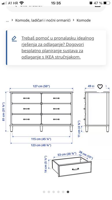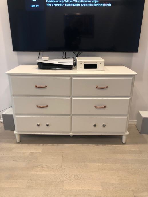 Predivna Tysedal komoda, ljepsa nego u ducanu, savrseno uscuvana, 6 ladica, sporo otvaranje, prelijepa unutrasnjost ladica, ruckice obojene u barkrenu boju, donje Zara home, savrseno usvuvana, stara godinu dana, placena 349 eur.