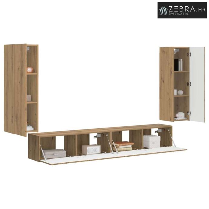 Ovaj set za zabavu kombinuje funkcionalnost i stil da unaprijedi vaš životni prostor. Modernim dizajnom i raznim opcijama za skladištenje idealan je za organizaciju vaših medijskih uređaja, a istovremeno dodaje sofisticiranost svakoj prostoriji. Savršeno za one koji cene elegantan, svestran namještaj.