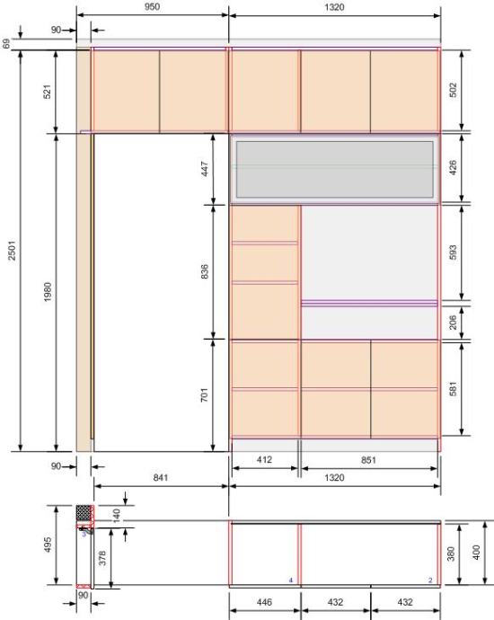 Veliki visoki ormar - sa staklenim podiznim vratima - kombinacija treš
