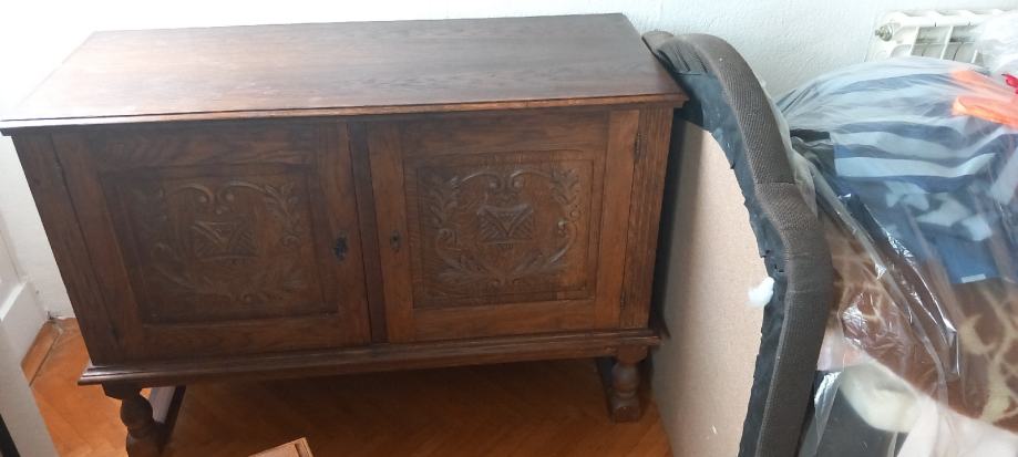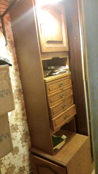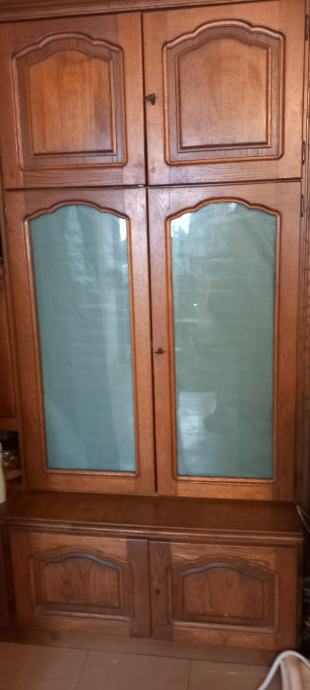 DNEVNI BORAVAK od punog drva (tri ormara) svaki ormar širine 104 cm visine 218 cm dubina na donjem dijelu 60 cm i u gornjem 40 cm. Takoder i pripadni ladicar (zadnja slika).