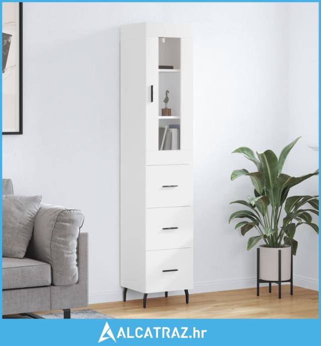 Visoka komoda bijeli 34,5x34x180 cm od konstruiranog drva - NOVO