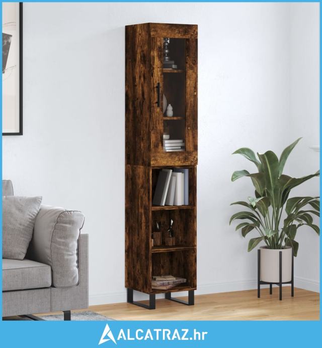 Visoka komoda dimljeni hrast 34,5x34x180cm konstruiranog drva - NOVO