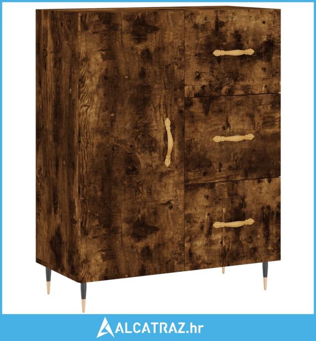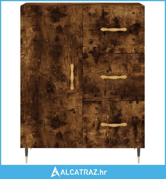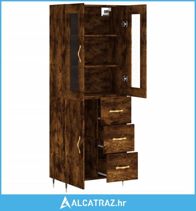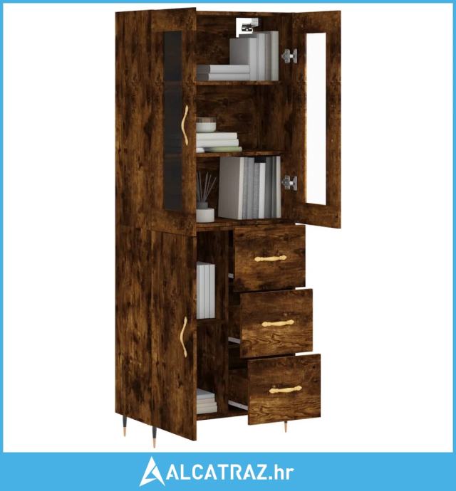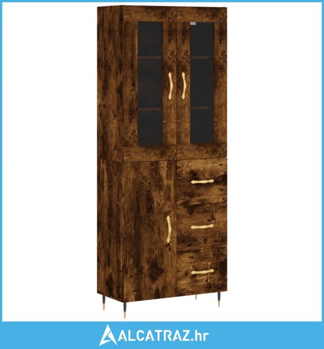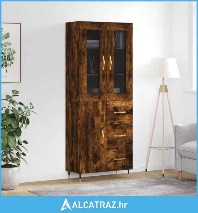 Visoka komoda dimljeni hrast 69,5x34x180 cm konstruiranog drva - NOVO