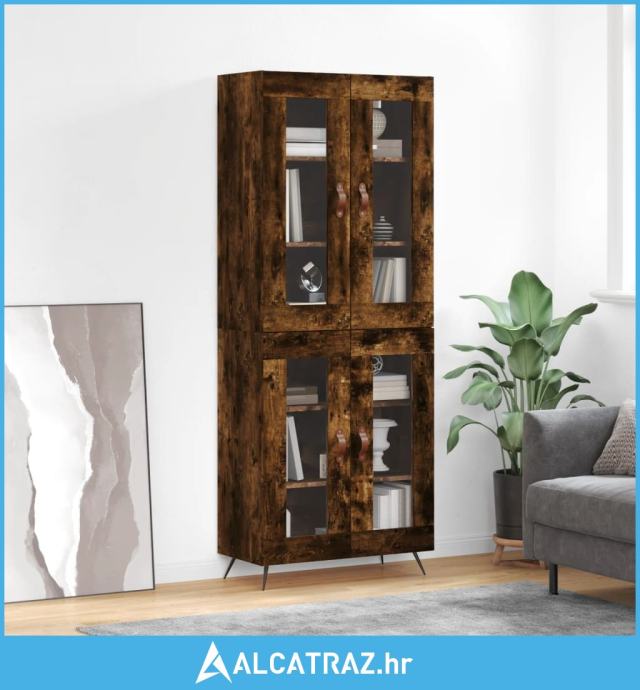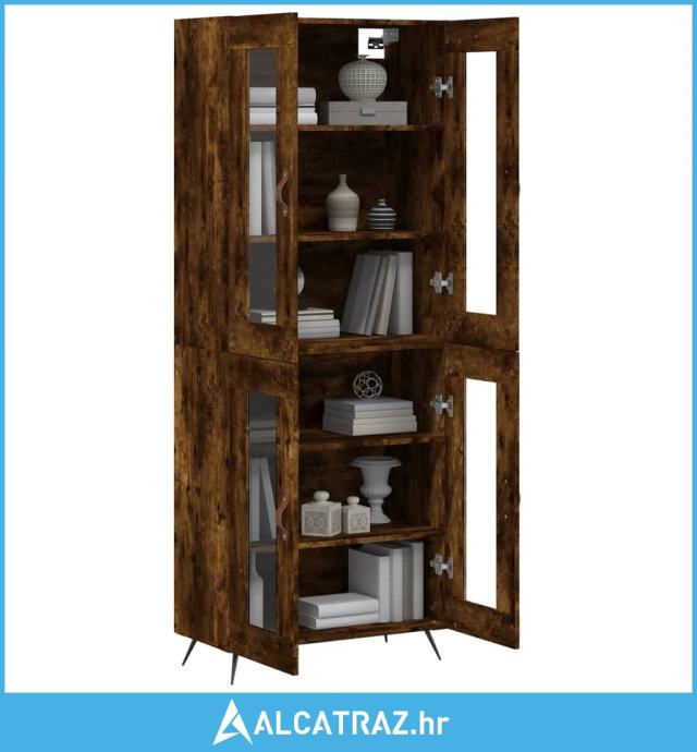 Visoka komoda dimljeni hrast 69,5x34x180 cm konstruiranog drva - NOVO