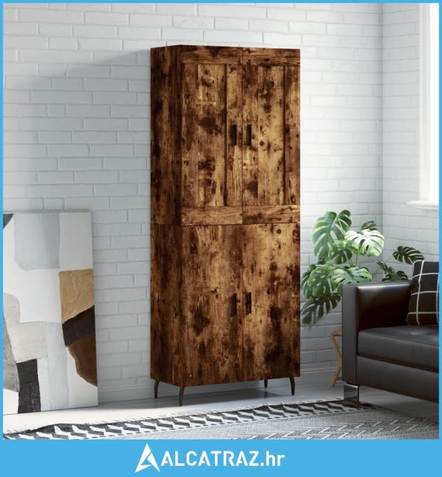 Visoka komoda dimljeni hrast 69,5x34x180 cm konstruiranog drva - NOVO