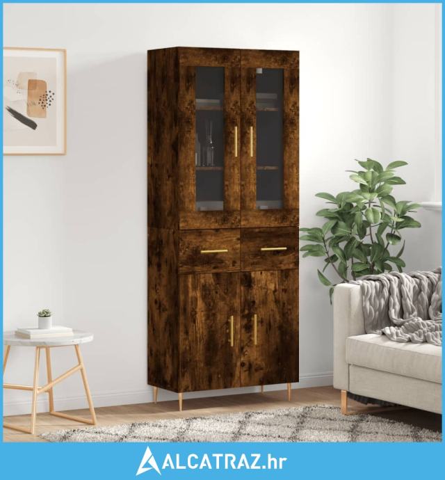 Visoka komoda dimljeni hrast 69,5x34x180 cm konstruiranog drva - NOVO