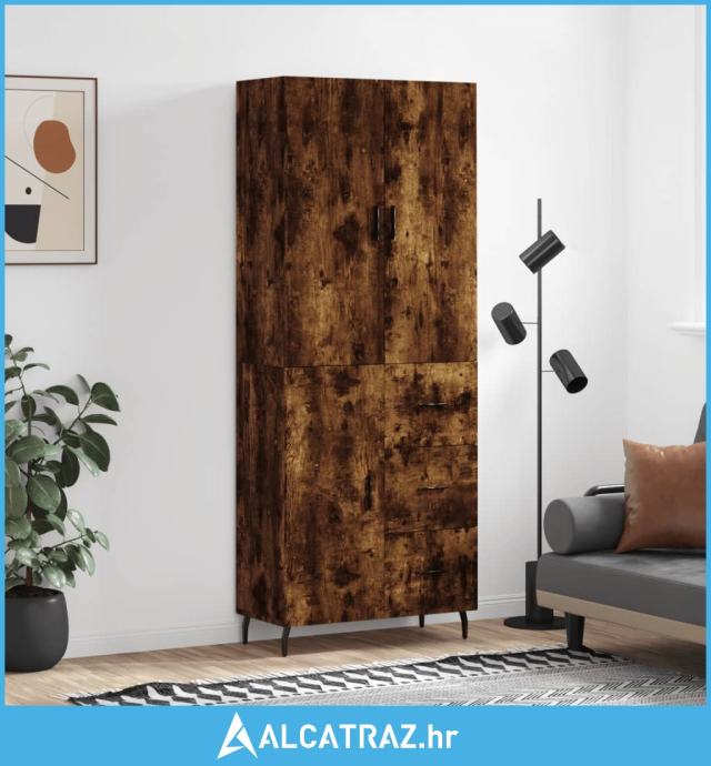 Visoka komoda dimljeni hrast 69,5x34x180 cm konstruiranog drva - NOVO