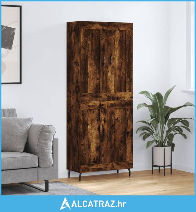 Visoka komoda dimljeni hrast 69,5x34x180 cm konstruiranog drva - NOVO