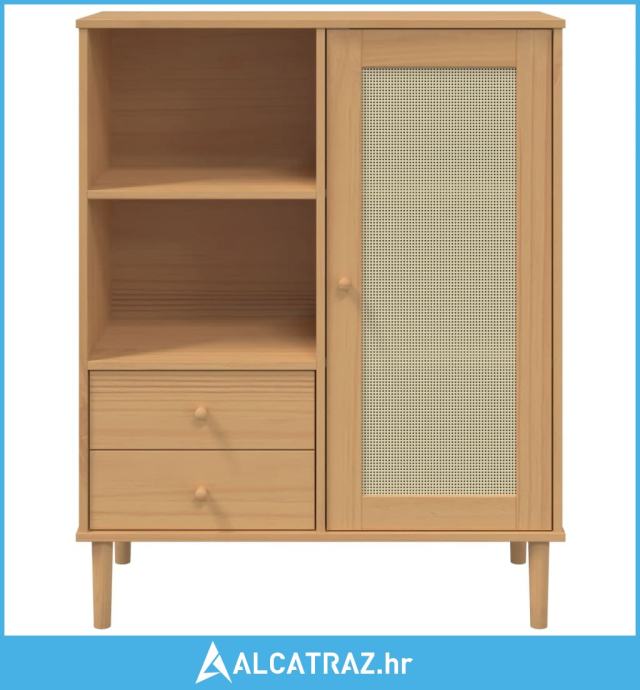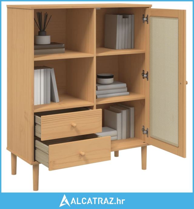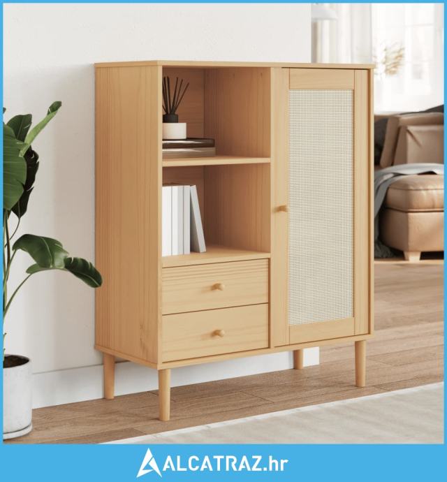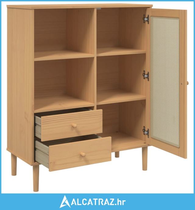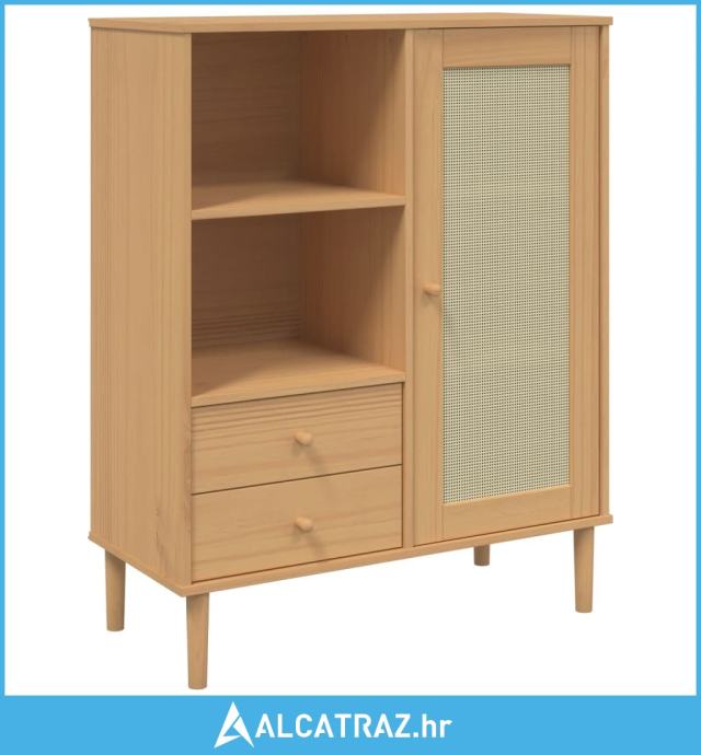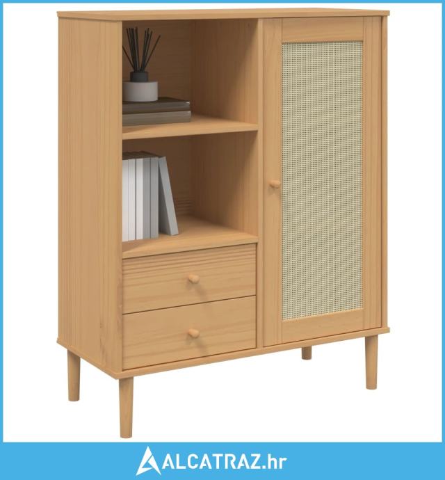 Visoka komoda SENJA smeđa izgled ratana 90x40x112 cm borovina - NOVO