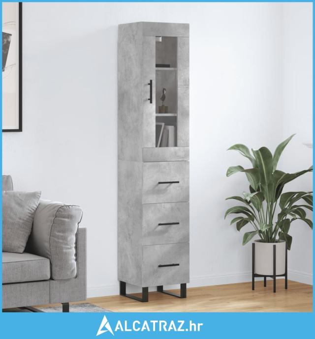 Visoka komoda siva betona 34,5x34x180 cm od konstruiranog drva - NOVO