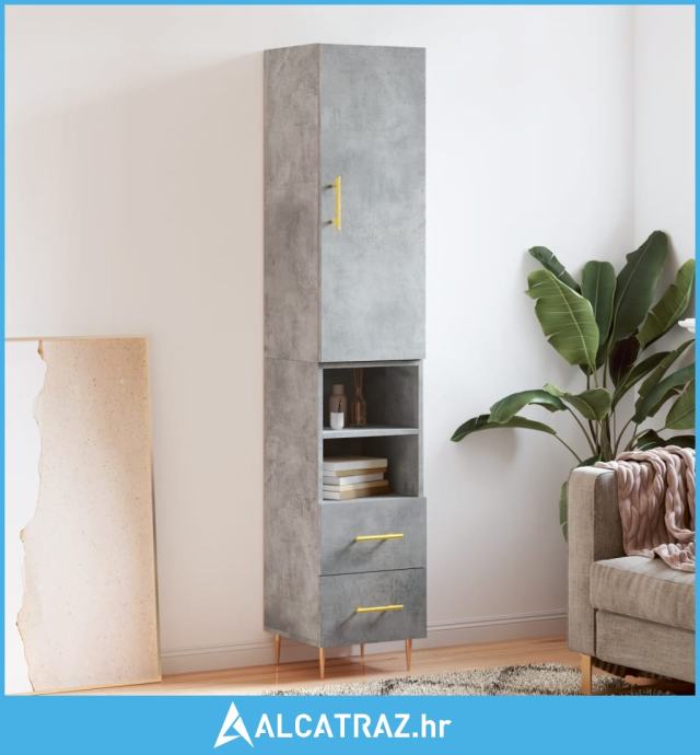 Visoka komoda siva betona 34,5x34x180 cm od konstruiranog drva - NOVO