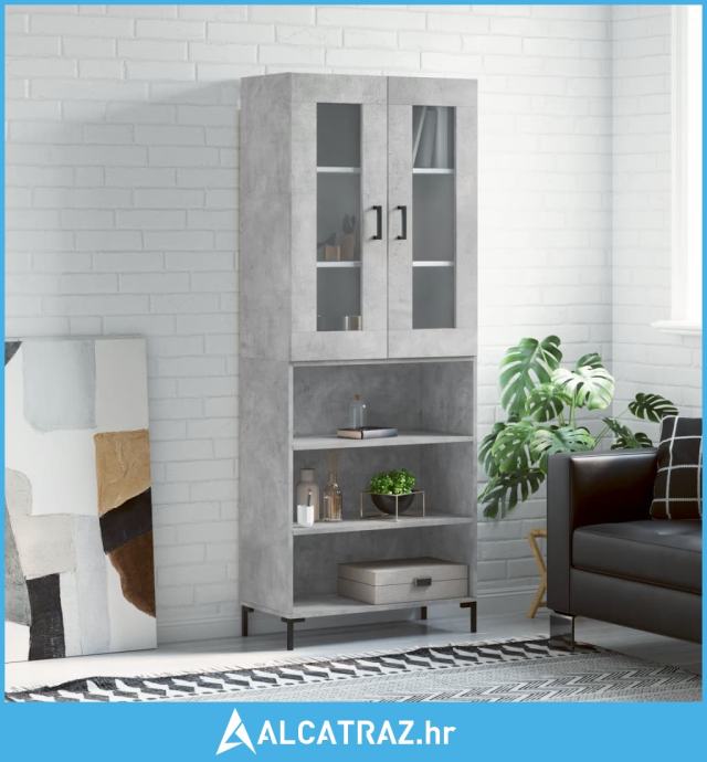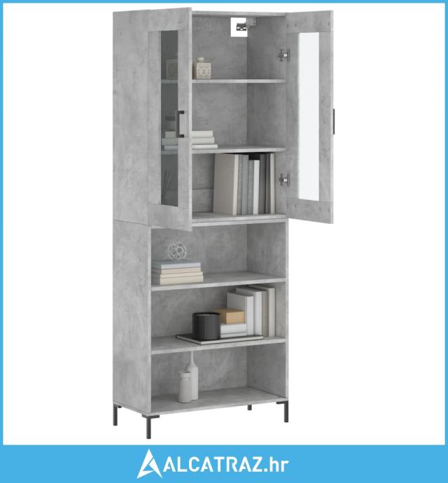 Visoka komoda siva betona 69,5x34x180 cm od konstruiranog drva - NOVO