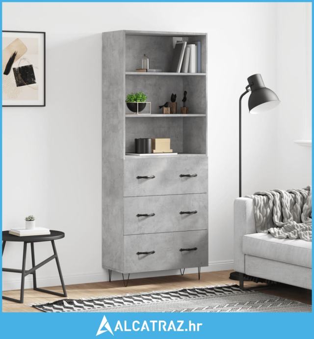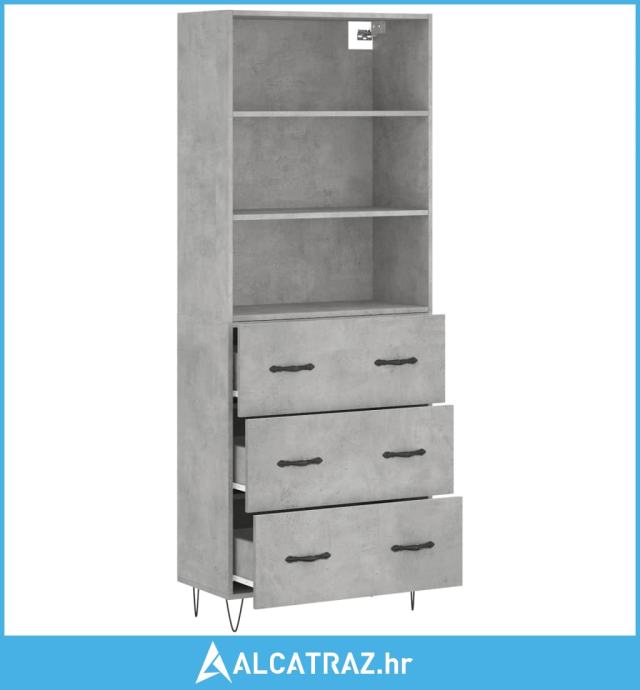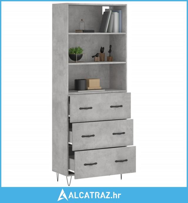 Visoka komoda siva betona 69,5x34x180 cm od konstruiranog drva - NOVO