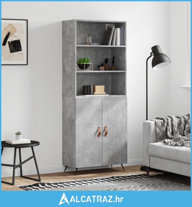 Visoka komoda siva betona 69,5x34x180 cm od konstruiranog drva - NOVO