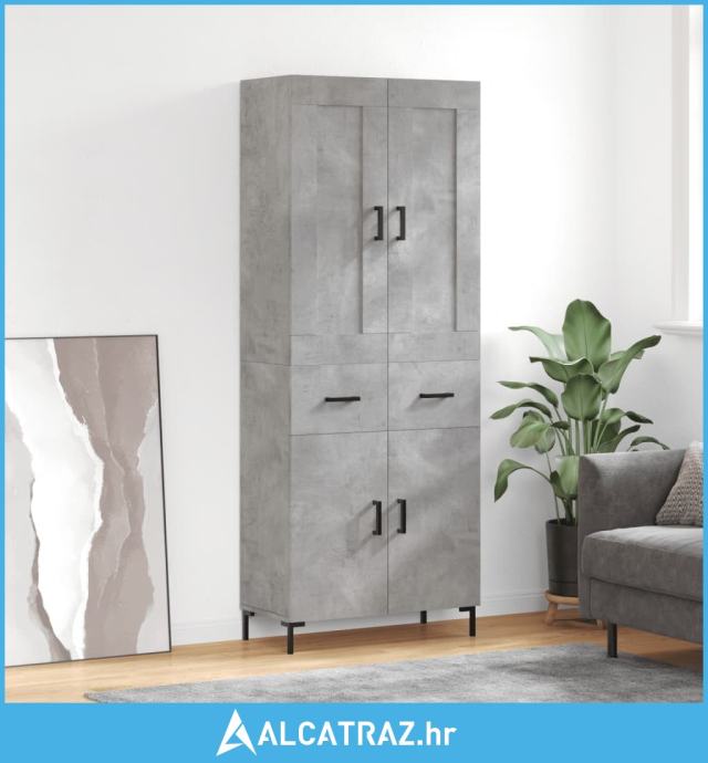 Visoka komoda siva betona 69,5x34x180 cm od konstruiranog drva - NOVO