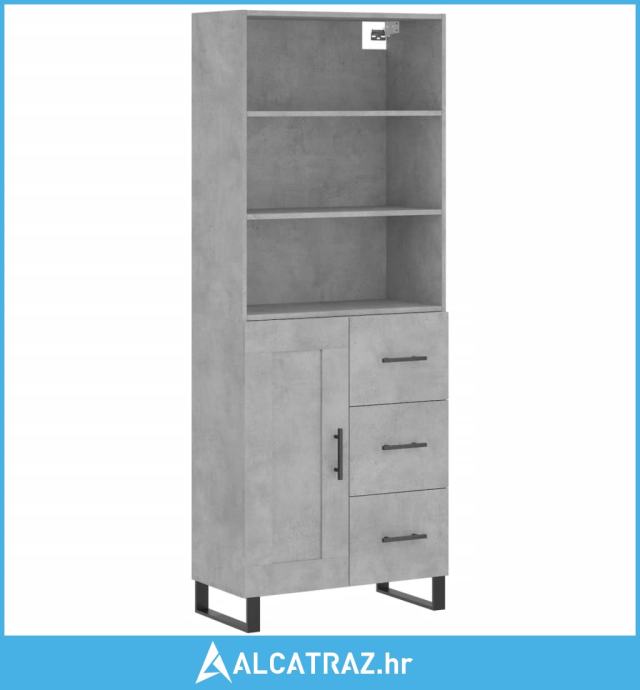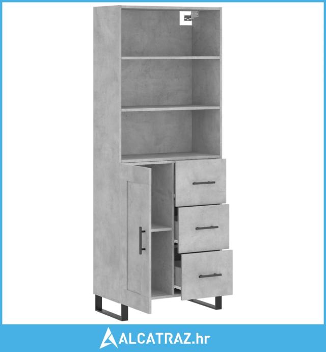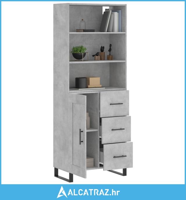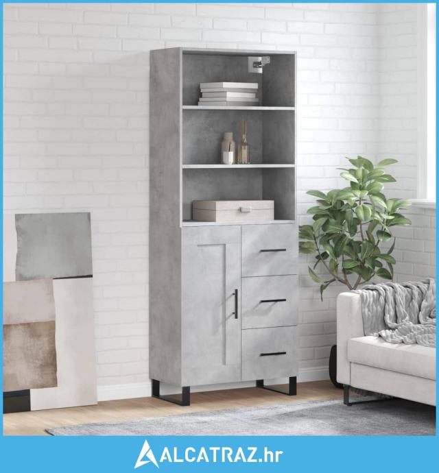 Visoka komoda siva betona 69,5x34x180 cm od konstruiranog drva - NOVO