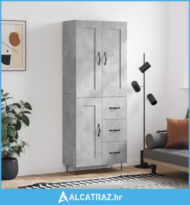 Visoka komoda siva betona 69,5x34x180 cm od konstruiranog drva - NOVO