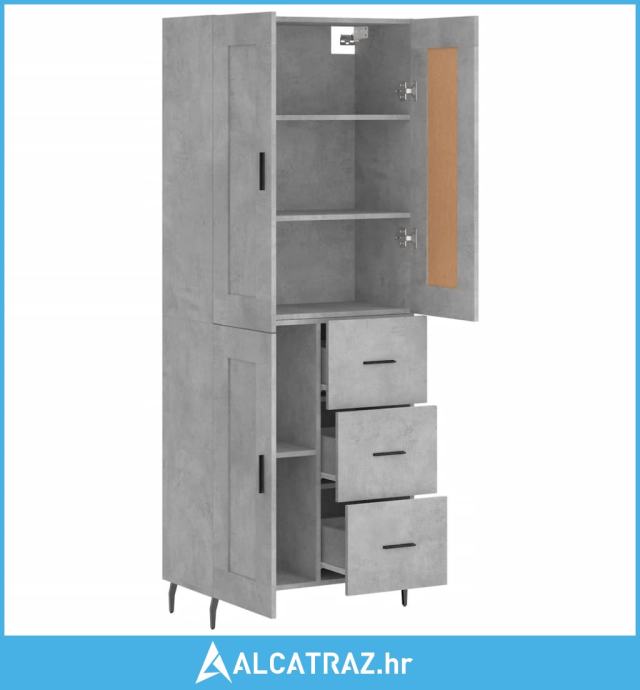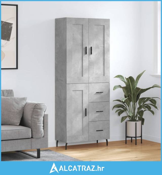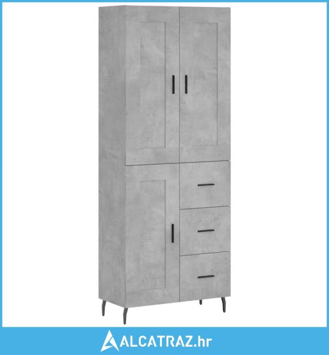 Visoka komoda siva betona 69,5x34x180 cm od konstruiranog drva - NOVO