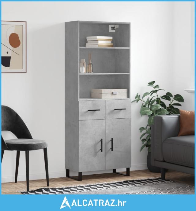 Visoka komoda siva betona 69,5x34x180 cm od konstruiranog drva - NOVO