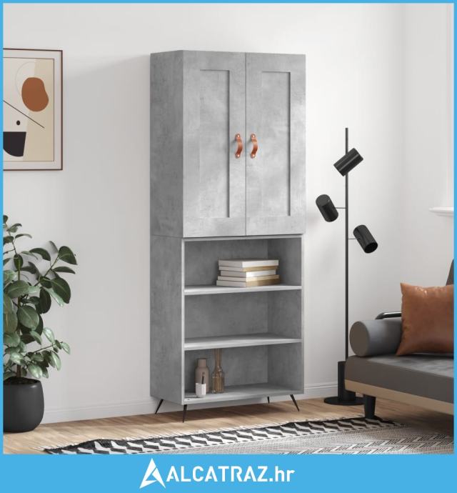Visoka komoda siva betona 69,5x34x180 cm od konstruiranog drva - NOVO