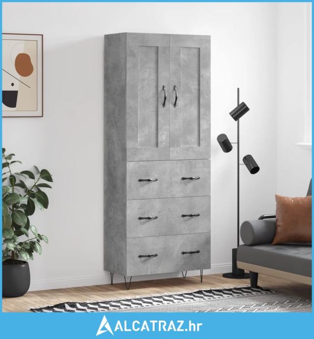 Visoka komoda siva betona 69,5x34x180 cm od konstruiranog drva - NOVO
