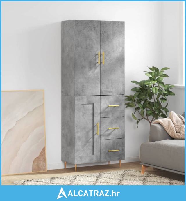 Visoka komoda siva betona 69,5x34x180 cm od konstruiranog drva - NOVO