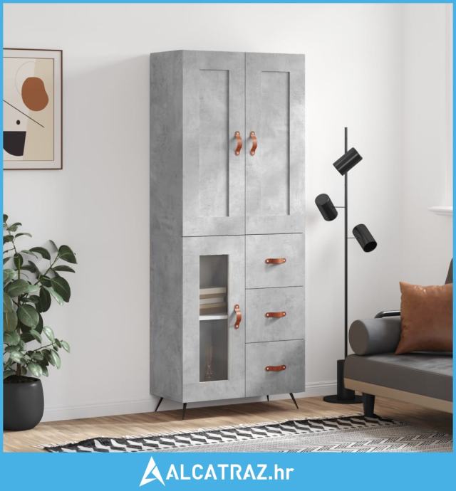 Visoka komoda siva betona 69,5x34x180 cm od konstruiranog drva - NOVO