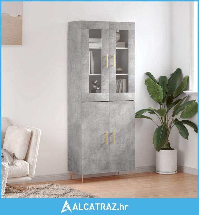 Visoka komoda siva betona 69,5x34x180 cm od konstruiranog drva - NOVO