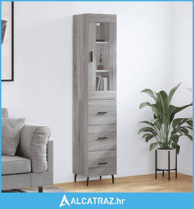 Visoka komoda siva sonome 34,5x34x180 cm od konstruiranog drva - NOVO