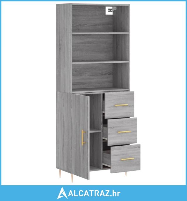 Visoka komoda siva sonome 69,5x34x180 cm od konstruiranog drva - NOVO