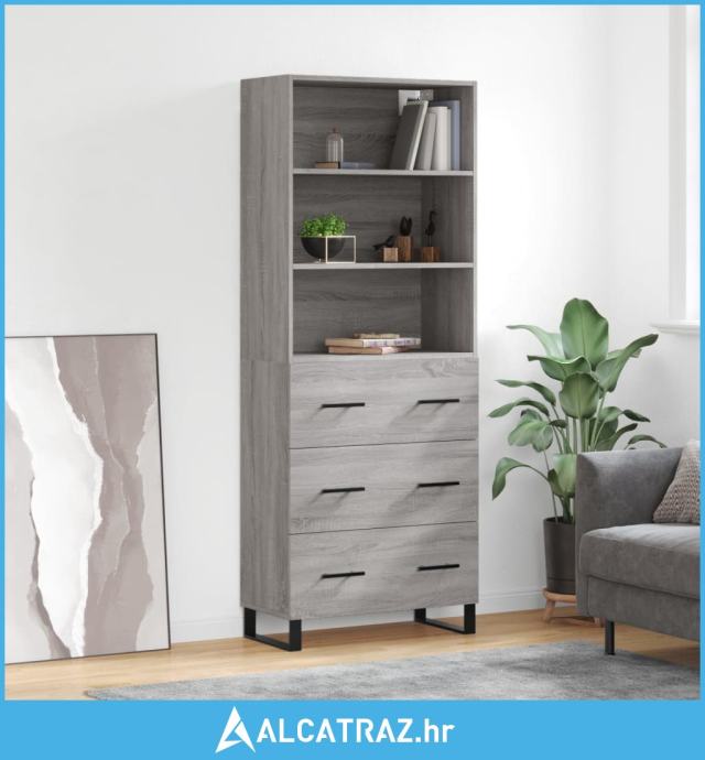 Visoka komoda siva sonome 69,5x34x180 cm od konstruiranog drva - NOVO
