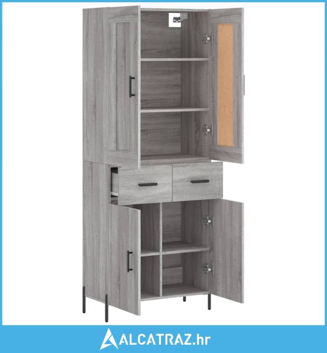 Visoka komoda siva sonome 69,5x34x180 cm od konstruiranog drva - NOVO