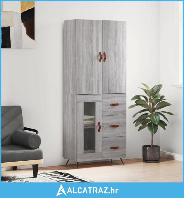 Visoka komoda siva sonome 69,5x34x180 cm od konstruiranog drva - NOVO