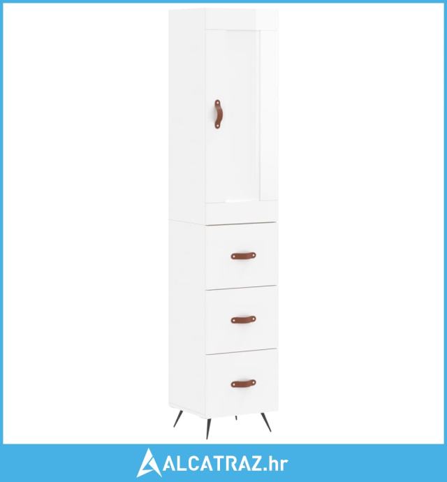 Visoka komoda sjajna bijela 34,5x34x180 cm konstruirano drvo - NOVO