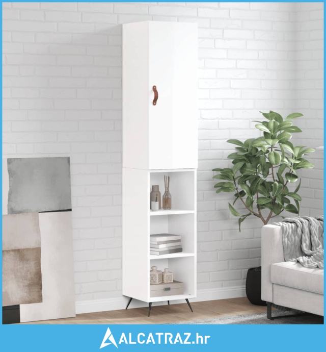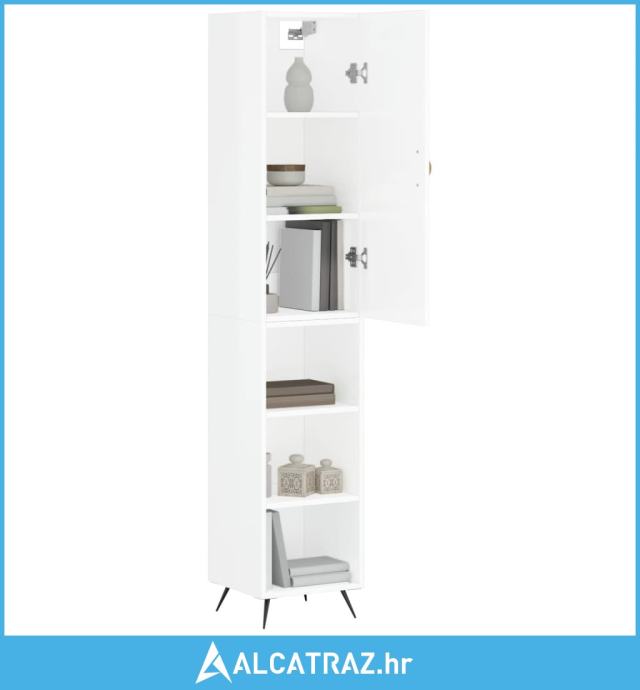 Visoka komoda sjajna bijela 34,5x34x180 cm konstruirano drvo - NOVO
