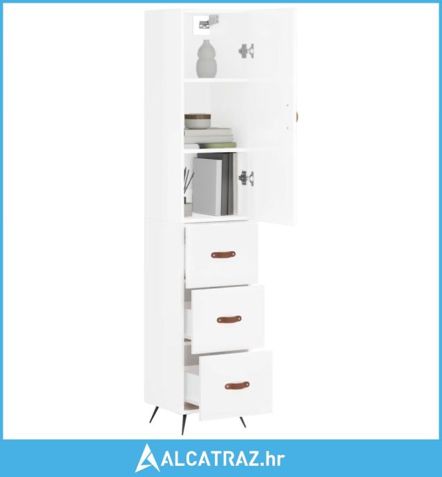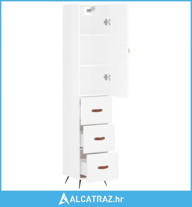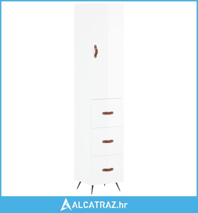 Visoka komoda sjajna bijela 34,5x34x180 cm konstruirano drvo - NOVO
