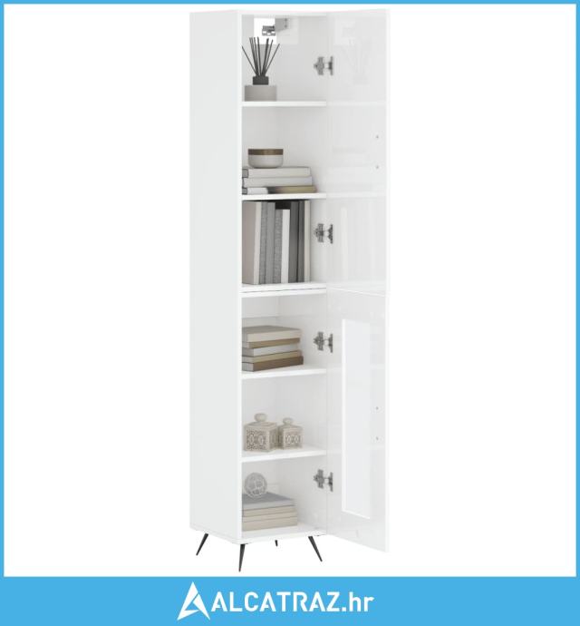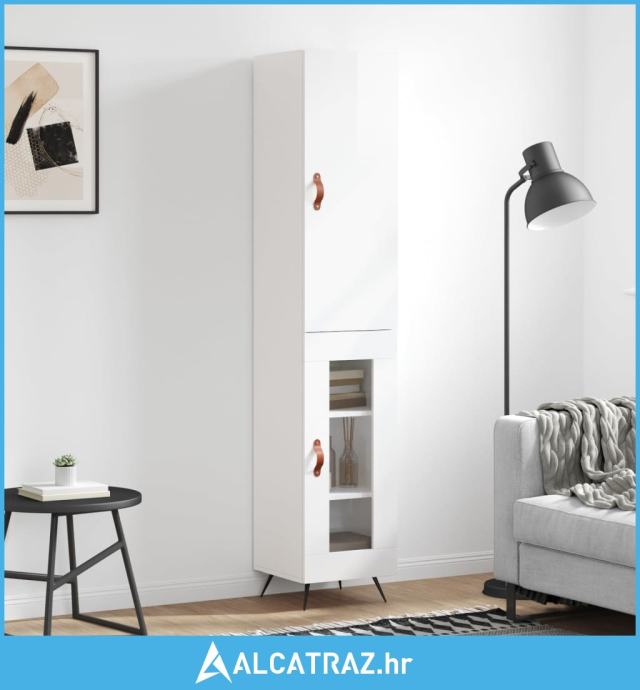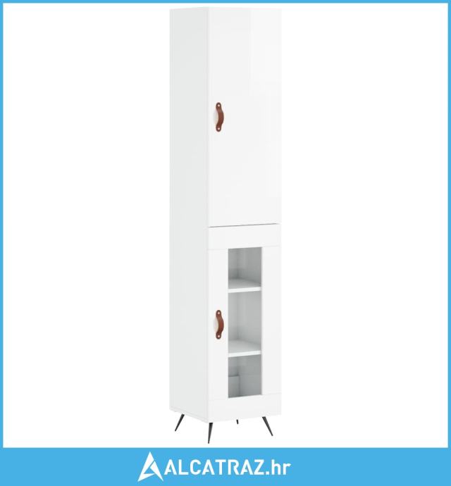 Visoka komoda sjajna bijela 34,5x34x180 cm konstruirano drvo - NOVO